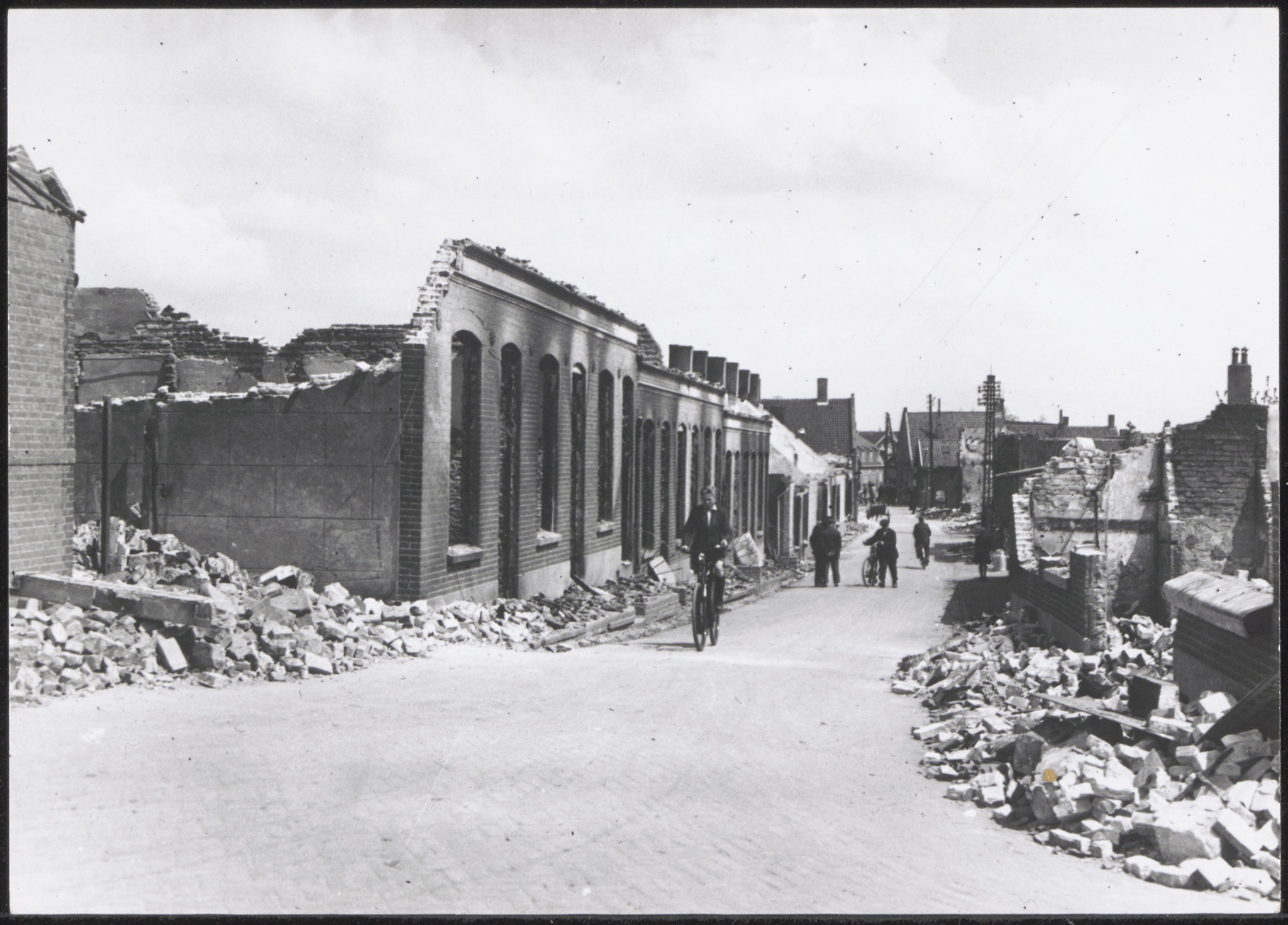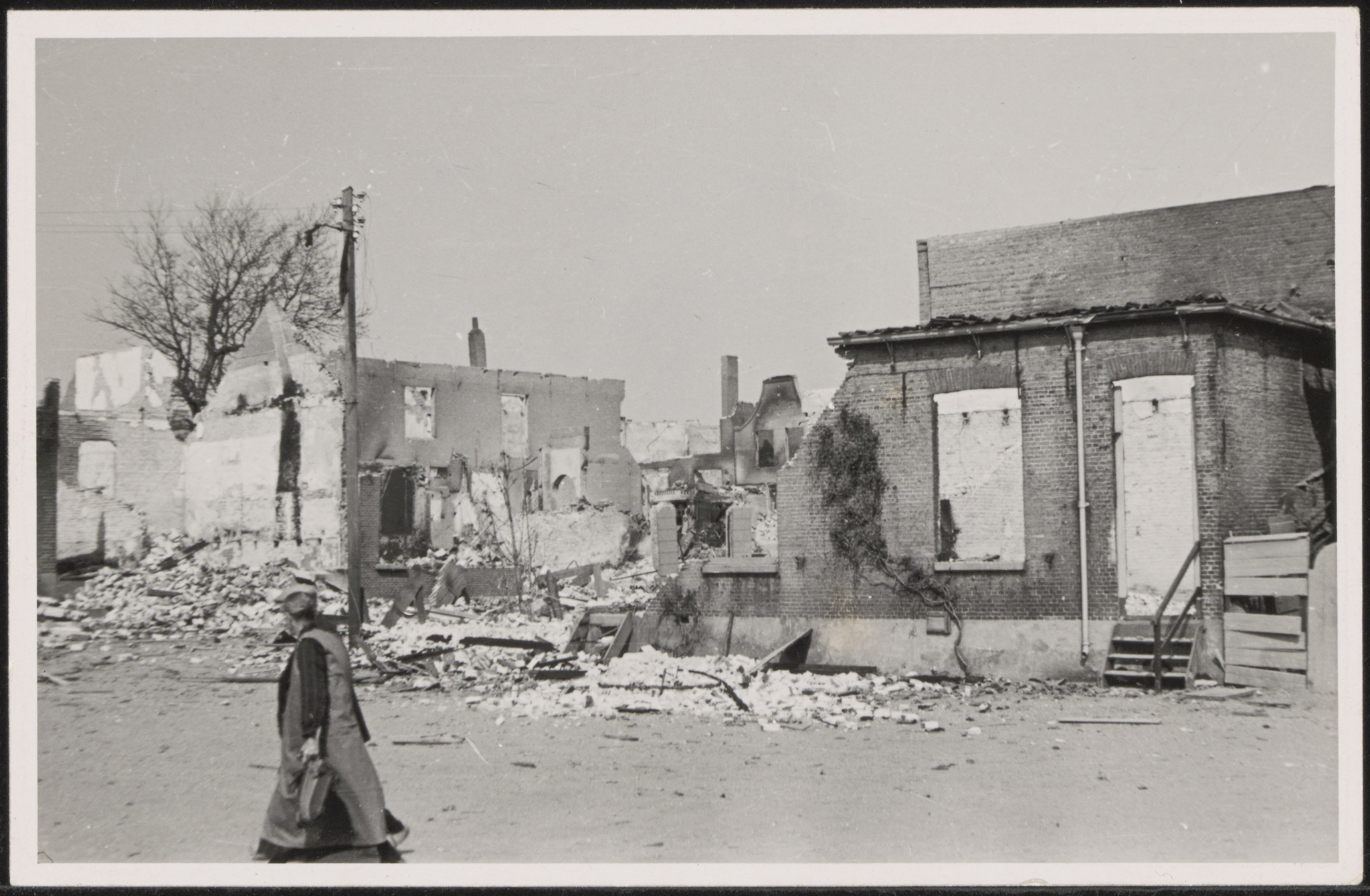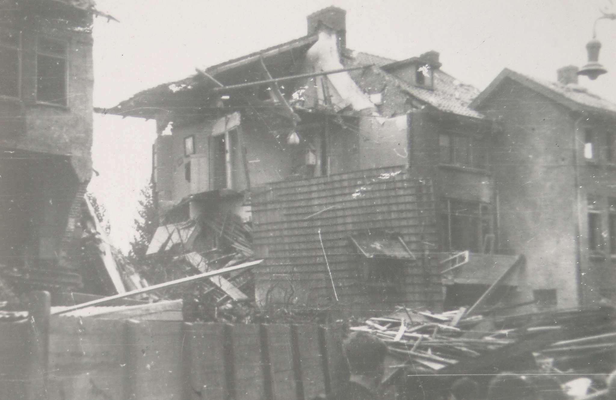 Verwoestingen in de Polderstraat door het bombardement op Alblasserdam in de Tweede Wereldoorlog.