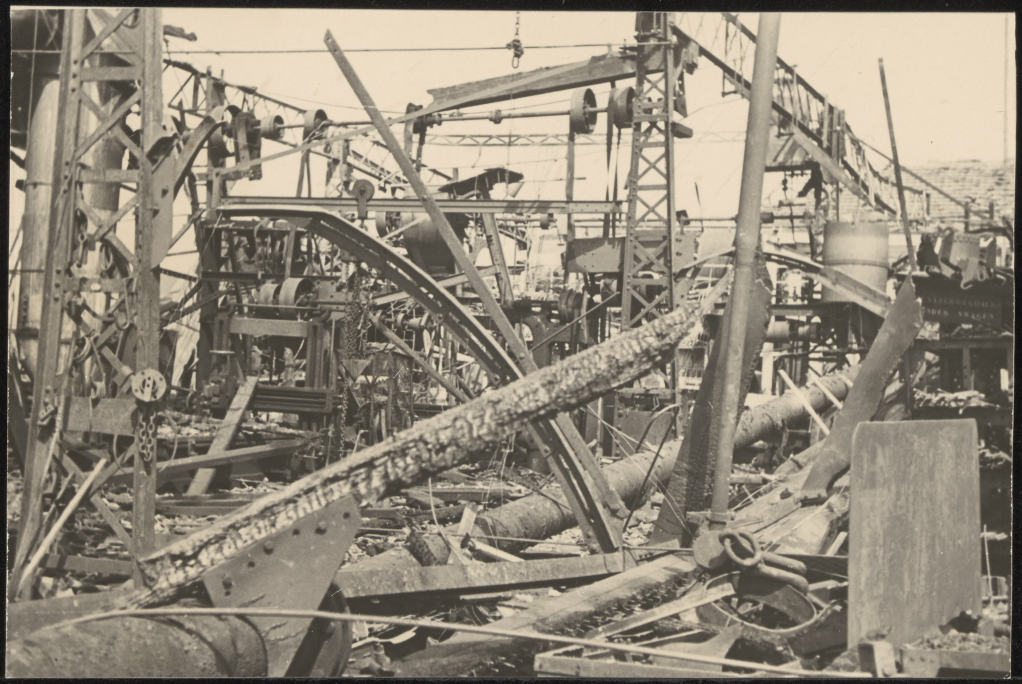 Vernielde loodsen van scheepswerf De Noord na het bombardement op het centrum van Alblasserdam.