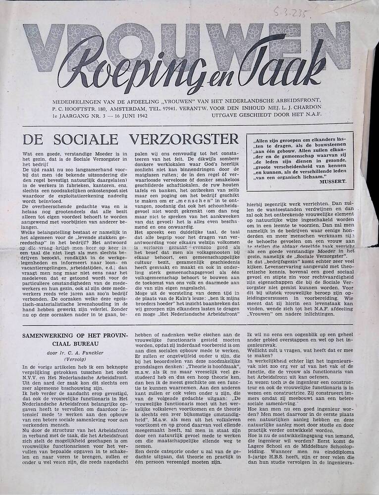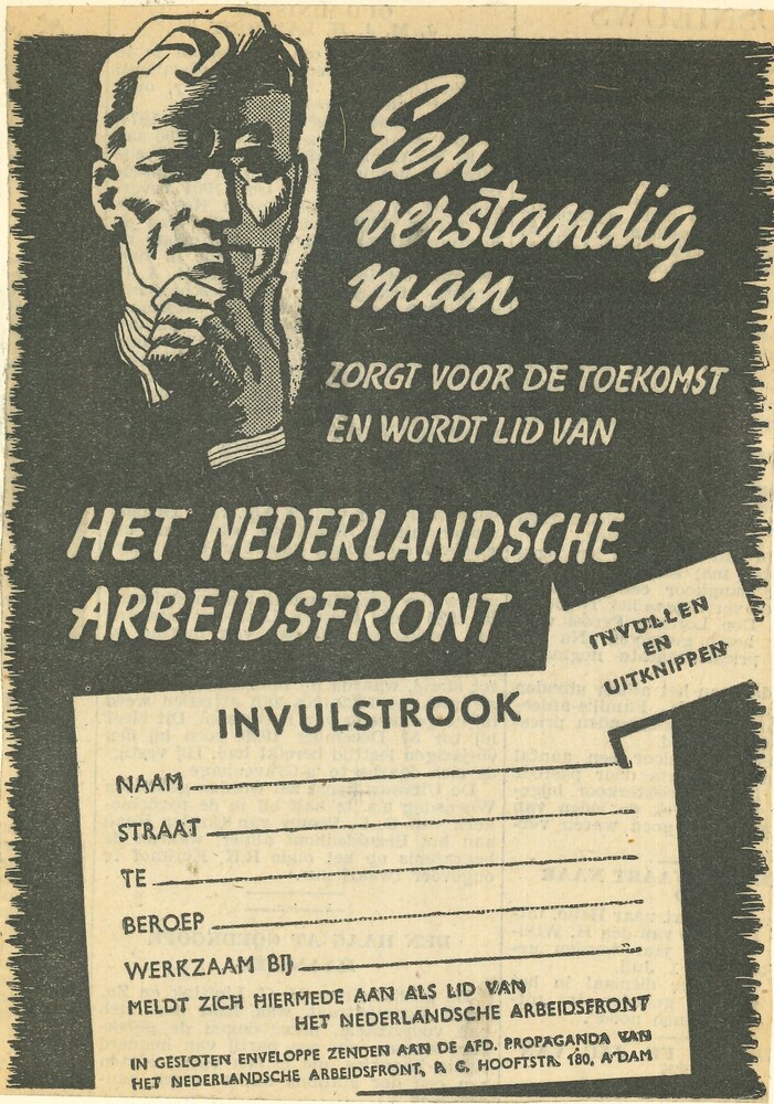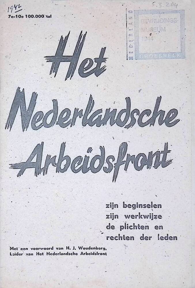 Leidraad voor de medewerkers van het Nederlandsche Arbeidersfront 1944 (1944). Het Nederlandsche Arbeidsfront was een nationaalsocialistische vakcentrale opgericht op 30 april 1942 bij een decreet door de rijkscommissaris Arthur Seyss-Inquart. De volgende dag, de dag van de arbeid, zouden de andere vakcentrales en vakbonden in Nederland opgeheven worden, zoals CNV, RKWV en de NVV.