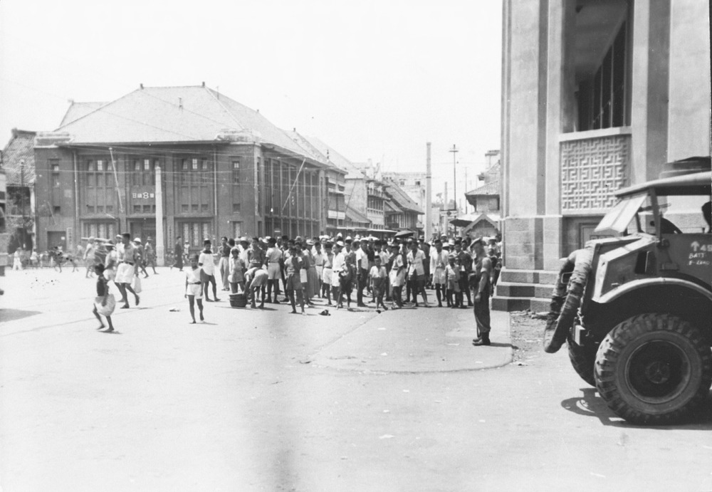 Foto uit een reeks van 13 foto's van de opstand in Bandoeng in 1950. Actie Westerling.