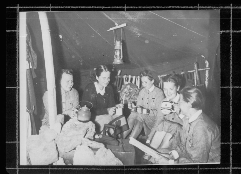 Finnische Lottas bei einer Ruhepause in ihrem Zelt hinter der Front.