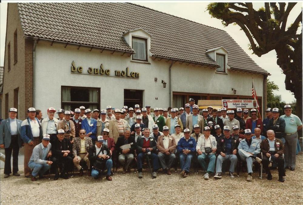 Amerikaanse veteranen poseren voor "De Oude Molen"