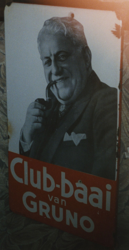 Een poster van Club-baai van Gruno; man met pijp.