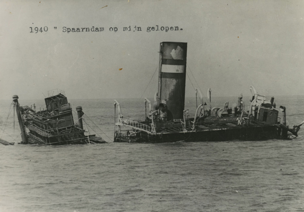 'Wrak van de 'Spaarndam', die op een mijn gelopen is' De Ss Spaarndam loopt op 27-11-1939 nabij de Theemsmonding op een ...