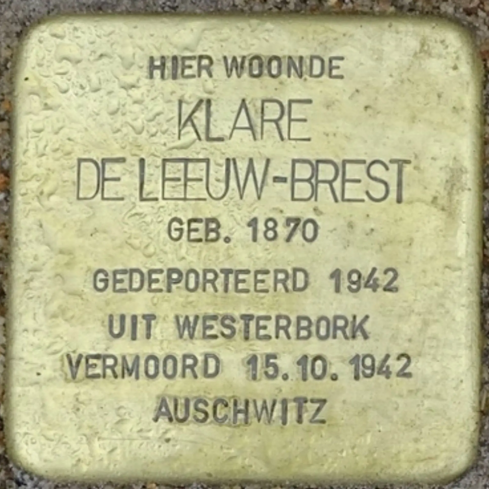 Vollenhove, 30 april 1870 - Auschwitz, 15 oktober 1942Het leven tijdens de oorlog van Klara de Leeuw-Brest