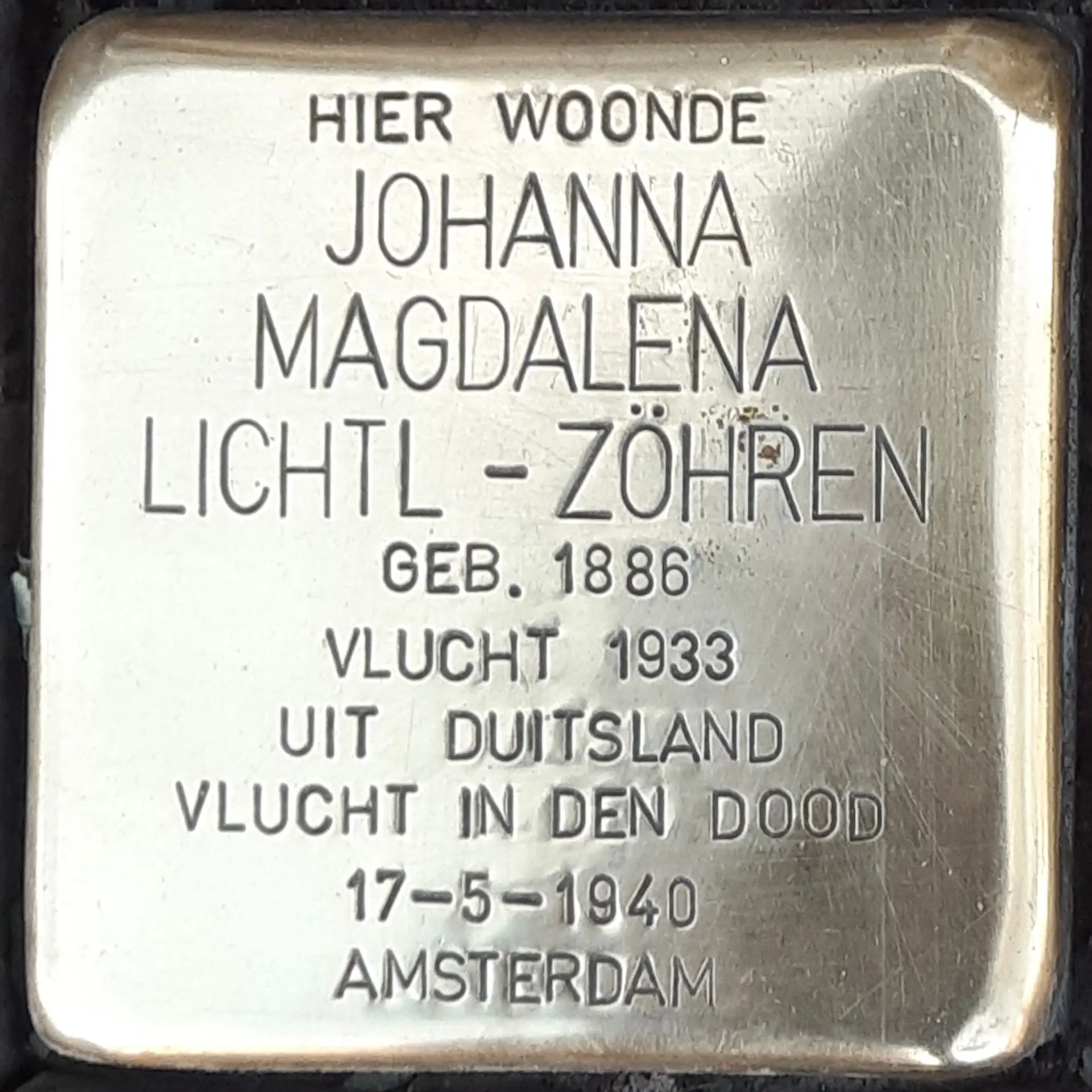 Crefeld, 13 december 1886 - Amsterdam, 17 mei 1940Het leven tijdens de oorlog van Johanna Magdalena Lichtl-Zöhren