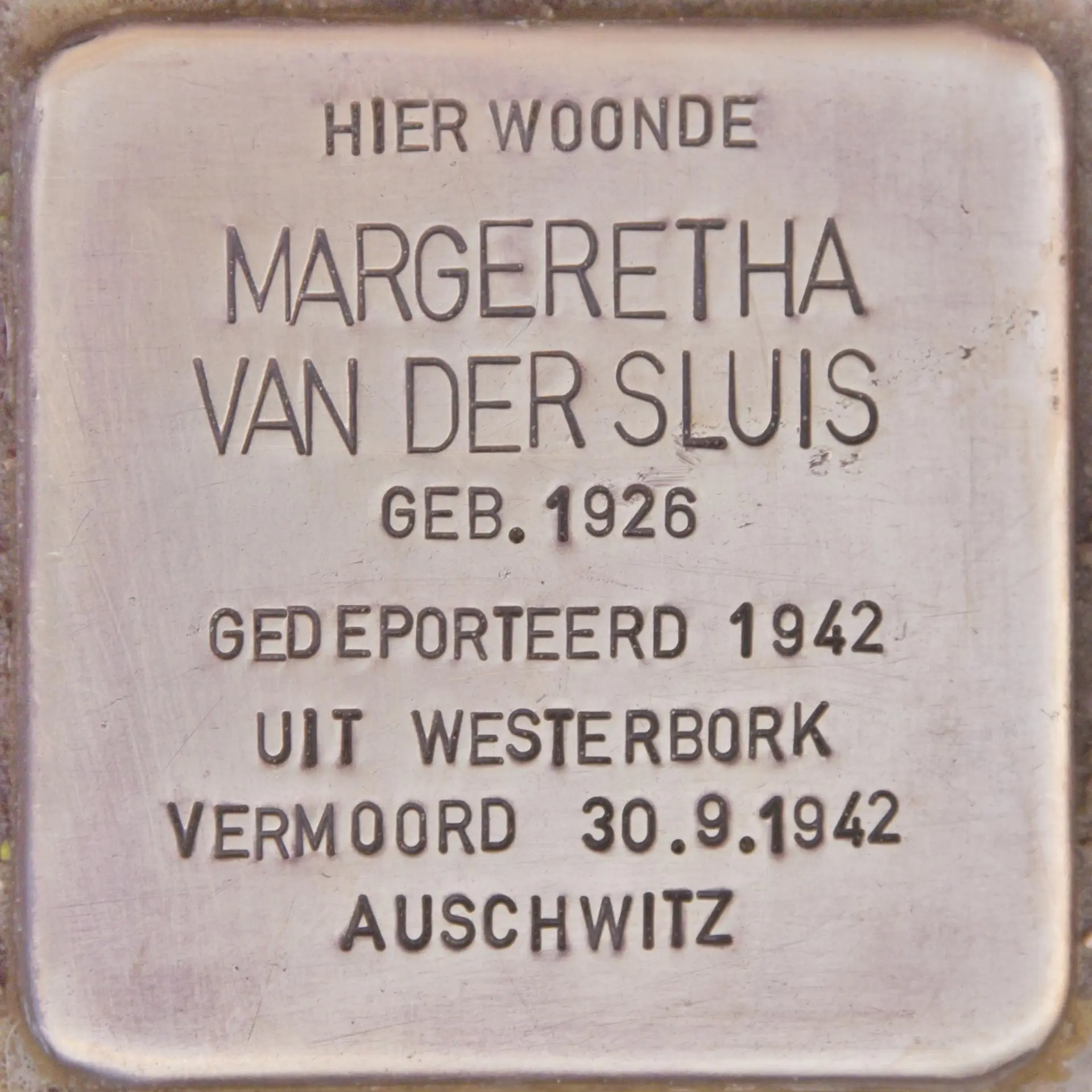 Rotterdam, 6 maart 1926 - Auschwitz, 30 september 1942Het leven tijdens de oorlog van Margaretha van der Sluis