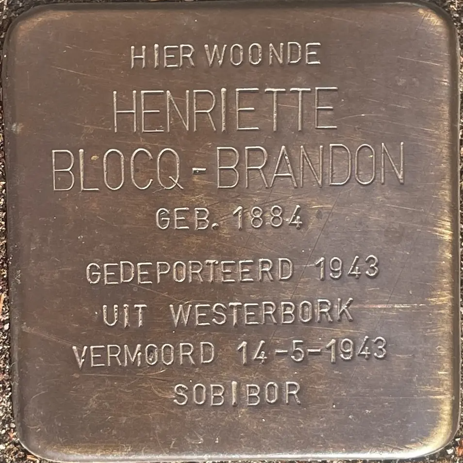 Amsterdam, 8 november 1884 - Sobibor, 14 mei 1943Het leven tijdens de oorlog van Henriette Charlotte Blocq-Brandon