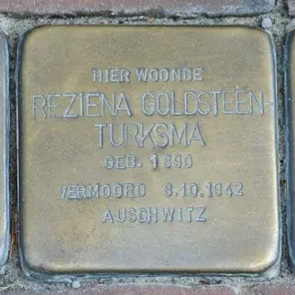 Drachten, 20 december 1890 - Auschwitz, 8 oktober 1942Gehuwd met Hartog Goldsteen. Zij werd op 5 oktober 1942 vanuit Westerbork afgevoerd naar Polen. Geen aanwijsbaar graf. OGS: gedenkboek 13 onder Reziena Goldsteen-Turksma.