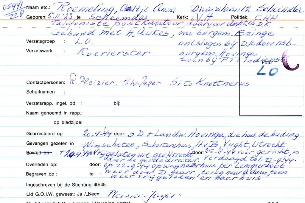 Systeemkaarten met namen van personen uit het verzet: Roelf Krans