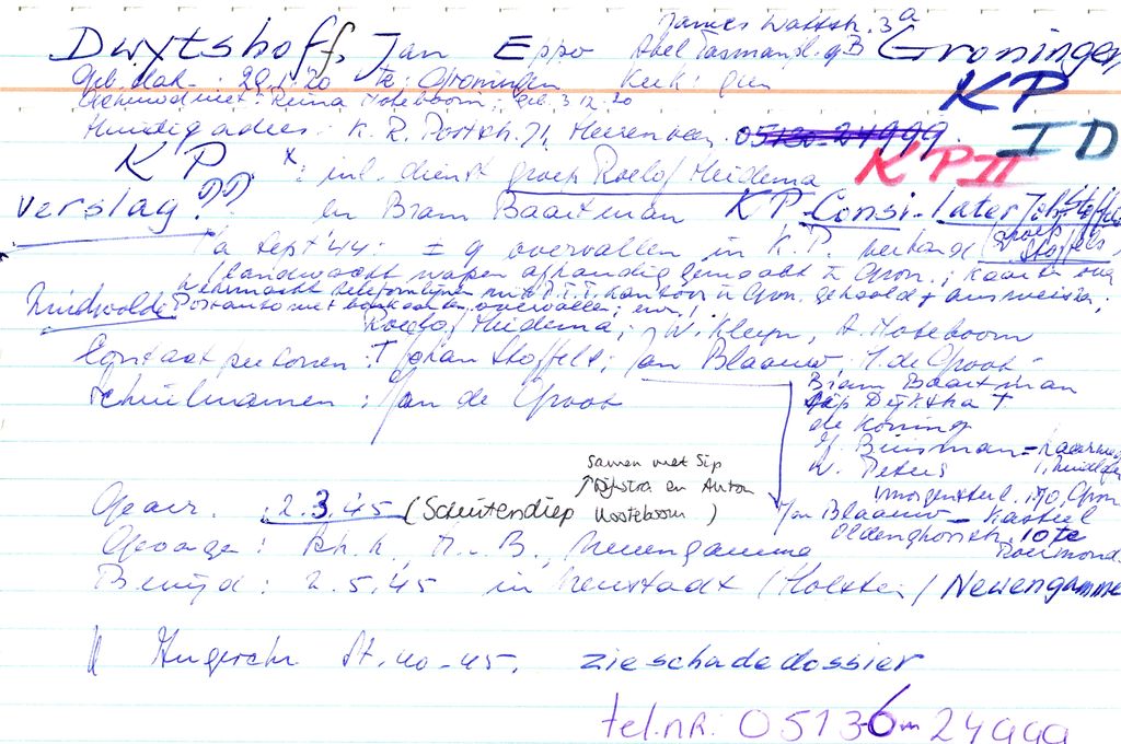 Systeemkaarten met namen van personen uit het verzet: Henderikus Koning