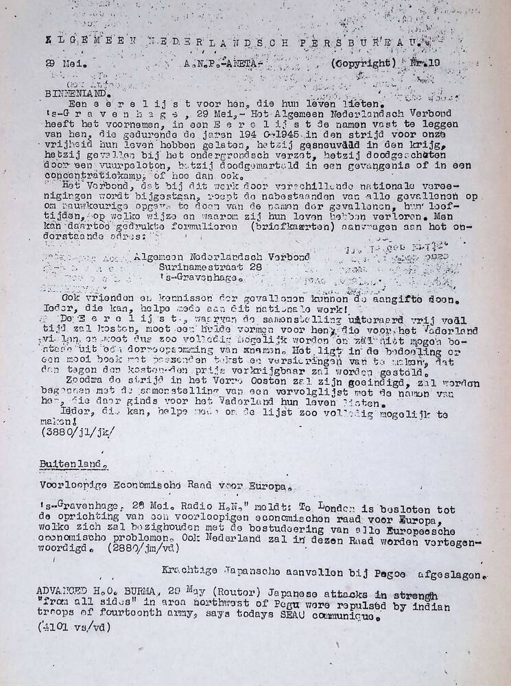 Verzetskruis > Erelijst van gevallenen > Opgave voor de erelijst der namen van hen, die voor het vaderland zijn gevallen De personen: Bosschart, A.A. 1898 - 1941 Boomsma, R. 1880 - 1943 Dobbe, T. 1901 - 1944 Dubelaar, M.H.G. 1896 - 1942 Gelder, van H.I. 1911 - 1945 Hermans, G. 1911-1945 Mante, G. 1898 - 1943 Masselman, P. W. 1917-1942 Medenbach de Rooy, J.G. A. 1906-1942 Naus, J.J. 1913 - 1943 Vark, ...