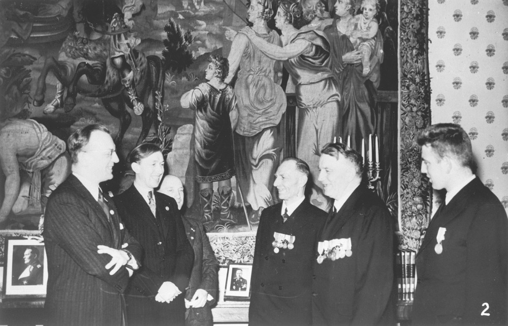 Dr. Seyss-Inquart ontving bemanning van 'Dorus Rijkers' wegens redding van 48 mannen van een Duits schip. Zij ontvangen gouden en zilveren horloges.