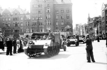 Nummer 7 van serie van 11 Huldiging van veteranen uit Canada en Groot-Brittanië, de bevrijders van Ede, en onthulling van het bevrijdingsmonument op het Burgemeester van Dijkeplein te Ede door burgemeester mr. W. Blanken. De huldiging van de veteranen.