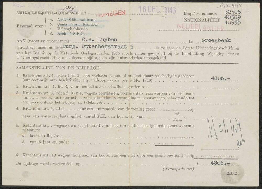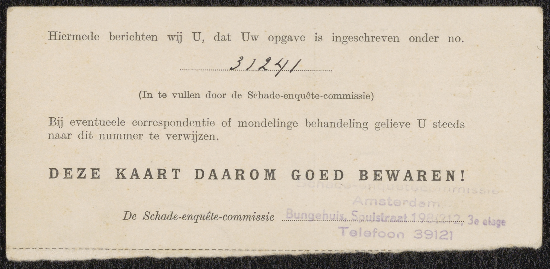 Gemeentebestuur van Zandvoort (Gemeente Zandvoort) > Archief van het gemeentebestuur > Procedure bij aanvraag en afwikkeling > Correspondentie met de Stichting Landelijke Bezettingsschade, de Schade Enquête Commissie en belanghebbenden betreffende de (procedurele) afwikkeling van schadegevallen. Met bekendmakingen, 1942-1947
