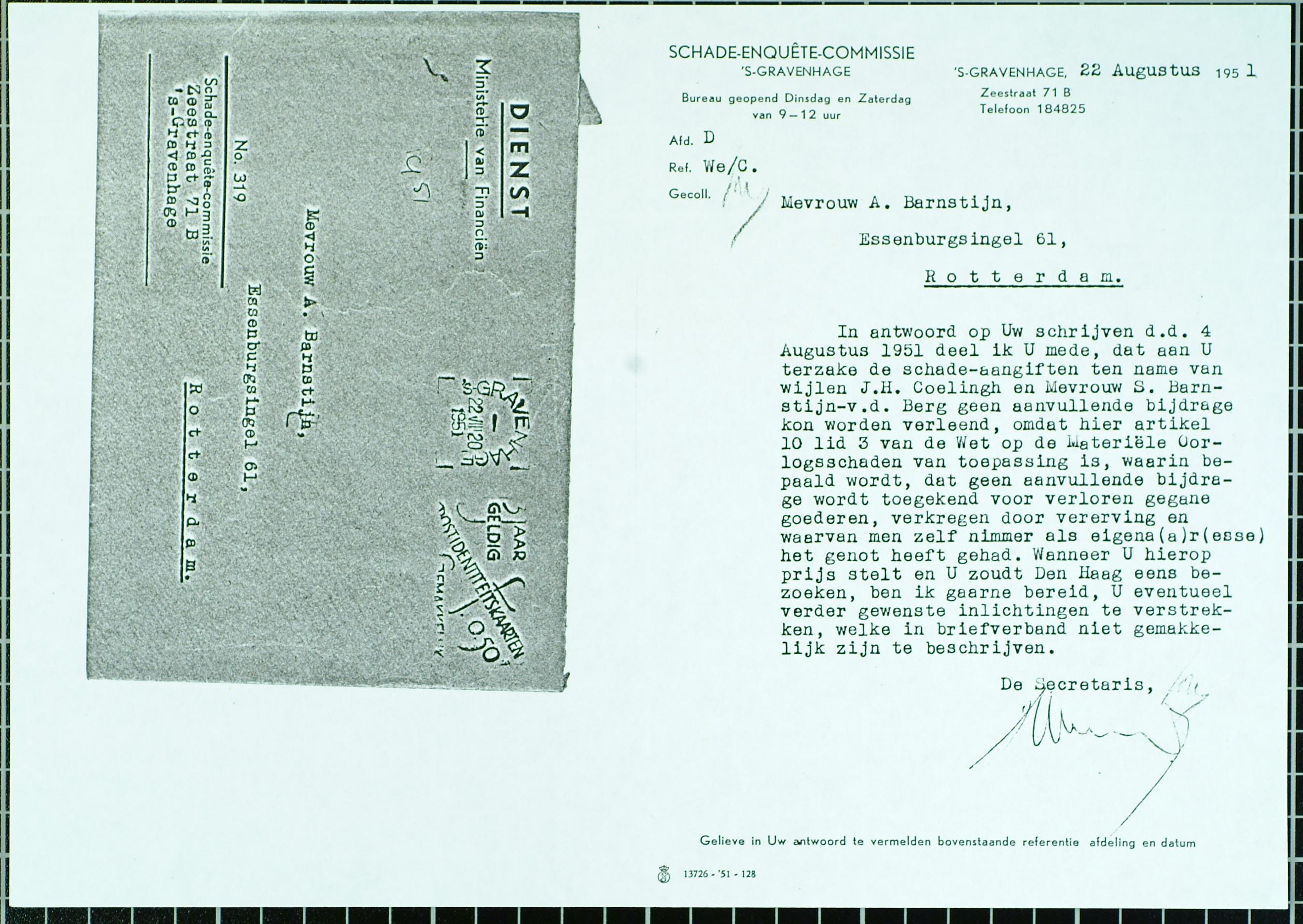 Correspondentie met de Stichting Landelijke Bezettingsschade, de Schade Enquête Commissie en belanghebbenden betreffende...