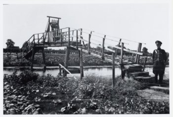 Stoottroepen bewaken Duitse burgers en krijgsgevangenen op Kamp Stövelhof tijdens graafwerkzaamheden.