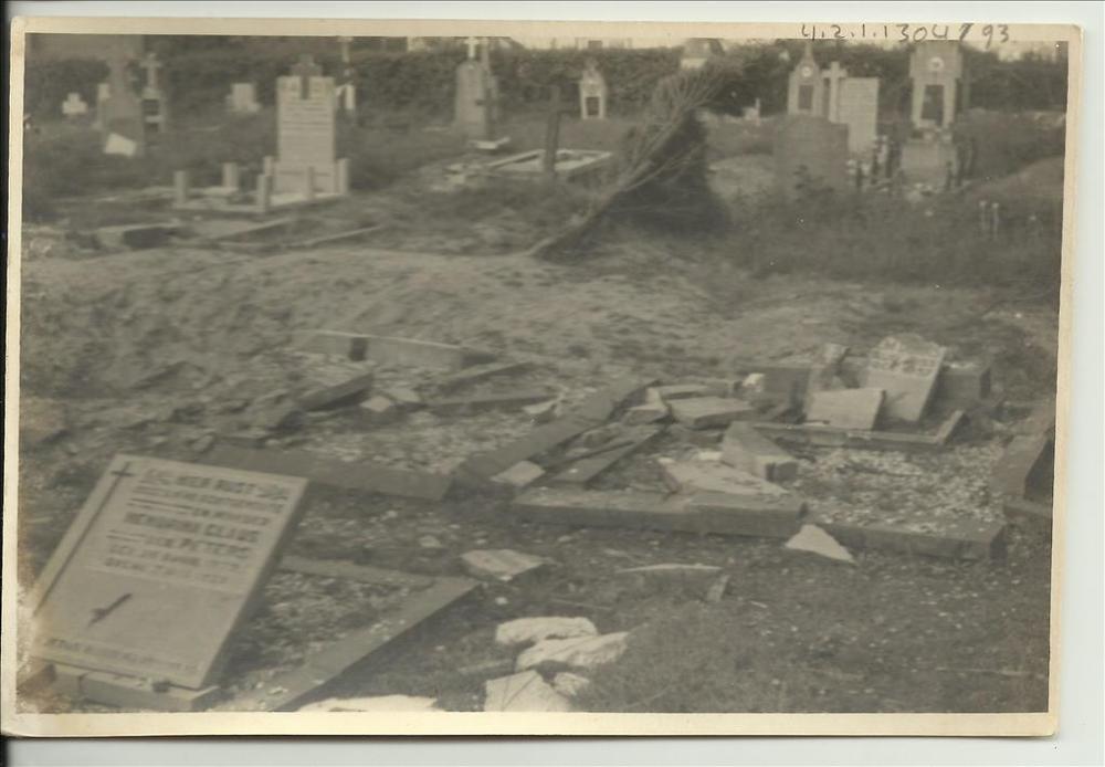 Fotocollage van zeven portretten van mannen met hun geboortedata en onderschrift 'Gevallen voor hun strijd voor Vrijheid en Recht, 23 october 1943'. Het zijn, bovenaan van links naar rechts: Herman Ruys, Johan Kemper, Mart Raben en waarschijnlijk Louis Bossevain. Onder: Antonius Tellegen, Johan Schimmel en waarschijnlijk Willy van Breukelen. De zeven maakten uit van de verzetsgroep De Vliegende Brigade. ...