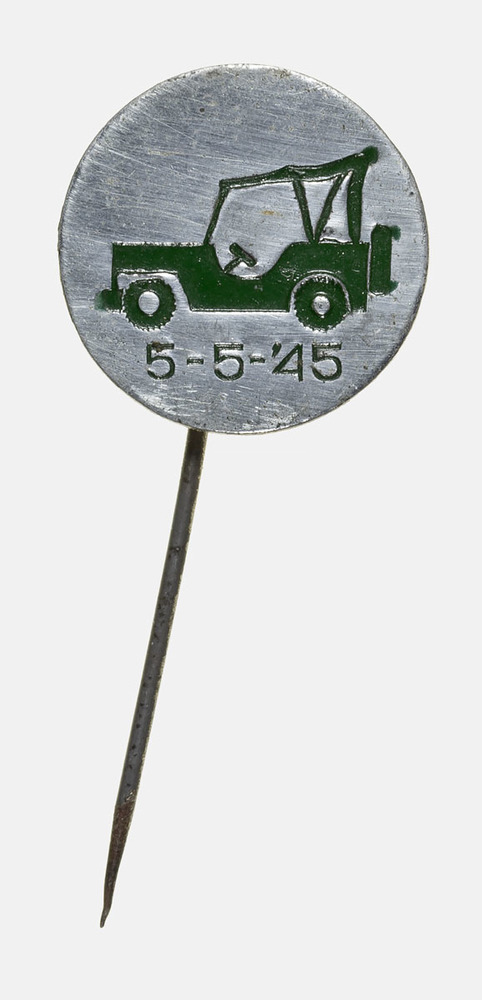 speldje met daarop de afbeelding van een Jeep. 5-5-1945