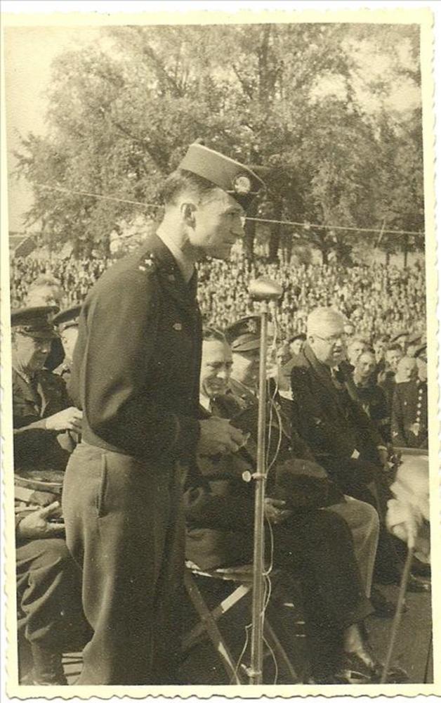 tekening: Volstad; drie Amerikaanse Airborne militairen; v.l.n.r. paratrooper van de 82nd Airborne Division, All American, Corporal van 101st Airborne Division, Screaming Eagles met een clip patronen voor zijn M-1 geweer en een militair van de 506th PIR (Currahee) 101st Airborne Division, Screaming Eagles met Mohawk kapsel (Normandië) uitgerust met een Thompson submachine gun M1A1, cal. 45 en een onbekend ...