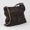 Donkerbruine 'pukkel' met jute schouderhengsel en leren riempjes